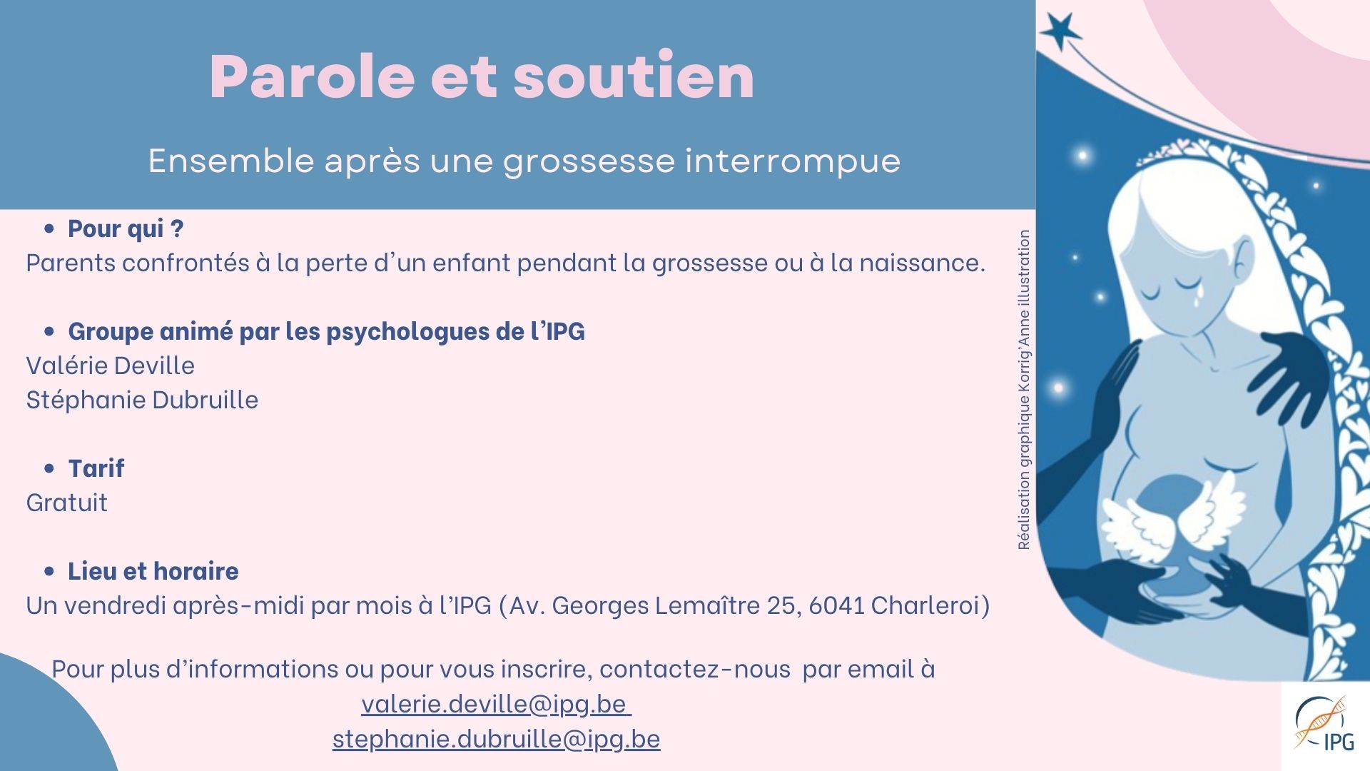 Des ressources accessibles, des temps d’échange et des orientations vers des structures spécialisées peuvent également vous être proposés afin de vous soutenir au mieux dans ce moment de vie.