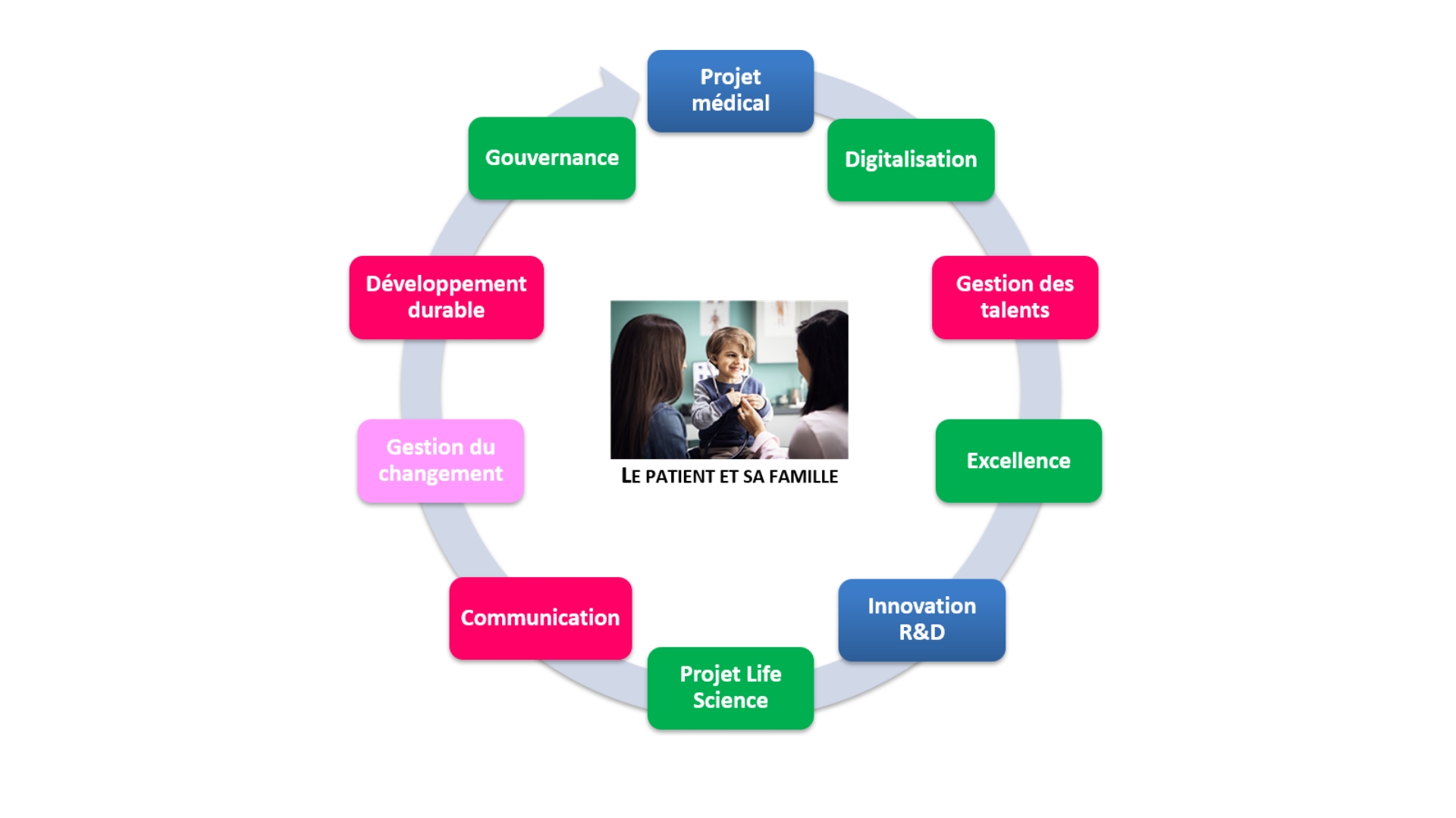 Ce plan repose sur 10 axes majeurs dont le projet médical, la recherche et l'innovation et la gouvernance.